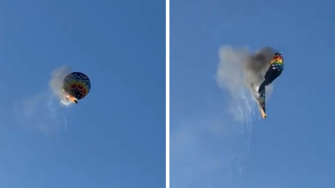 A video of an airborne hot air balloon catching fire and plummeting to the earth is making its rounds on social media.