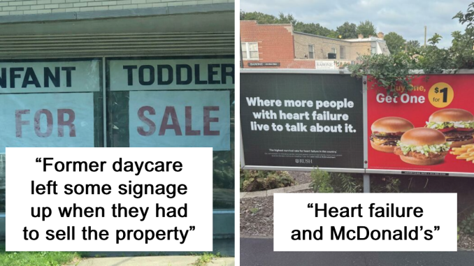 We can’t get away from marketing, which means that most advertisements just blur together. But if something is particularly hilarious, whether it was intended to be or not, it might just stand out from the crowd. Below, you’ll find a list that Bored Panda has compiled of some of the funniest advertising placement fails people have ever spotted out in the wild. Enjoy scrolling through these ads that somehow ended up in the most unfortunate places, and be sure to upvote the ones that make you laugh!