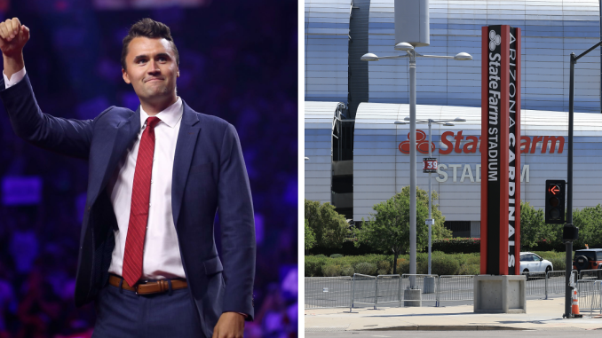 A man carrying a firearm and a knife has been arrested at the State Farm Stadium in Arizona, where the late Charlie Kirk’s memorial is set to be held.