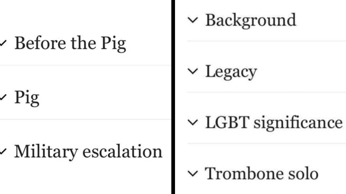 And what better way to do this than to use Wikipedia tables of contents? I wish I was making this up, but it was a thing for a very short period of time in internet history when Twitter user @ZeeZeeMooMoo posted a screencap of the table of contents of the Wikipedia article for the 1859 Pig War.