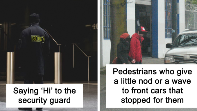 Pedestrians who give a little nod or a wave to front cars that stopped for them.