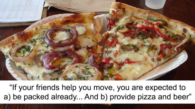 If your friends help you move, you are expected to a) be packed already… And b) provide pizza and beer.
