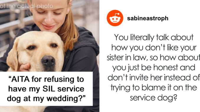But one Redditor is refusing to let her sister-in-law bring her service dog to her wedding. It’s not because she dislikes animals, but because her maid of honor—who also happens to be her sister—is severely allergic to dogs. She wants her by her side on her big day without risking her health.