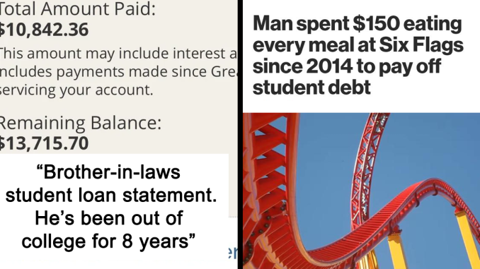 The screenshots below will shed light on the scope of the problem and how it’s basically impossible to pay off a student loan in the US. It may make your body temp soar, so if you’re already feeling on edge today, you may as well skip to the next article. And the brave ones, as well as the student debt survivors themselves, please scroll down below.