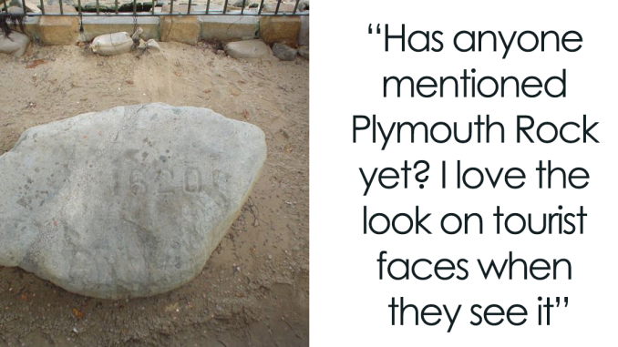 Has anyone mentioned Plymouth Rock yet? I love the look on tourist faces when they see it 😆😆😆😆😆.