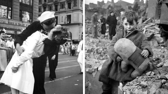 Immediately after Japan’s surrender on August 14, 1945, photographer Alfred Eisenstaedt captured this iconic kiss between two strangers, a sailor and a dental assistant, in Times Square. This photo would become a symbol of joy, marking the end of the war. Interestingly, for decades, the identities of the pair were debated, with several people stepping forward to claim they were them.