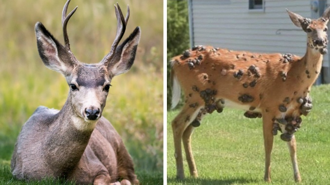 Said “zombie deer” is the moniker given to cervids that have been seen with large warts on their skin.