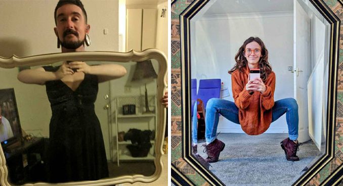 There are even entire online communities dedicated to what’s become one of our new favorite genres. Mirrors For Sale is the place to be. Not if you’re really looking to buy a mirror. But rather, if you want some hilarious inspiration for how *not to take a photo of a reflective item. The page has 90,000 members and is meant to showcase unintentional reflections only. But now and again, a very intentional image pops up. And it’s too good not to share.