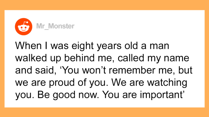 When I was eight years old a man walked up behind me, called my name and said, “You won’t remember me, but we are proud of you. We are watching you. Be good now. You are important.”