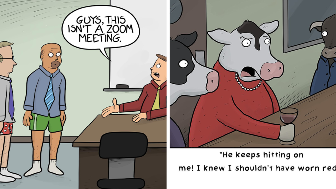 Nate has been creating comics for over a decade, building a loyal following online and sharing his work in newspapers, greeting cards, and more. The artist strives to create work that “relates in some ways to what we humans have to contend with,” making his comics both funny and meaningful. Scroll down to enjoy his newest collection!