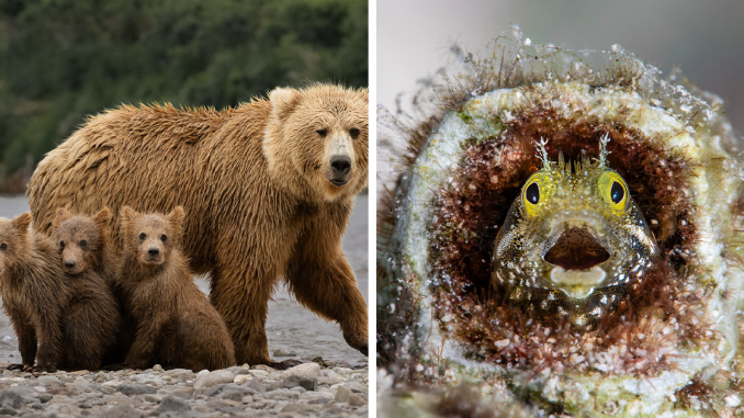 “This bear family in Alaska gave me only a few seconds to take a family photo for them. And they never told me where to send the photo to, nor did I dare to ask.”
