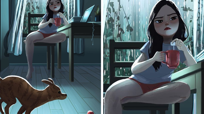 Having someone around to share the little things in life with you can make every moment seem picturesque. Yaoyao Ma Van As is a professional illustrator and animator who has drawn landscapes and other backgrounds for popular cartoons including Rick and Morty, but her greatest passion, it seems, is illustrating those magical moments. Her subject? Our relationship with our pets and the simple comfort that comes from having them around. Her dog illustrations, most of which are based on her and her little dog named Parker, will make your heart soar with their saturated colors and cozy lighting.