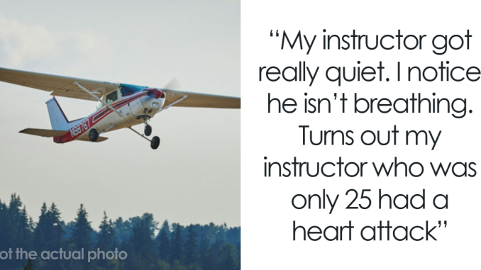 He takes over the stick and he looks ashen. He then starts to breath irratically and says I need to help him control the plane. He radios tower and up till now I’m thinking it’s a prank.
